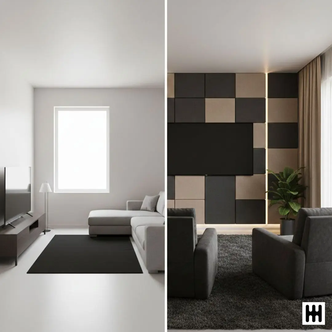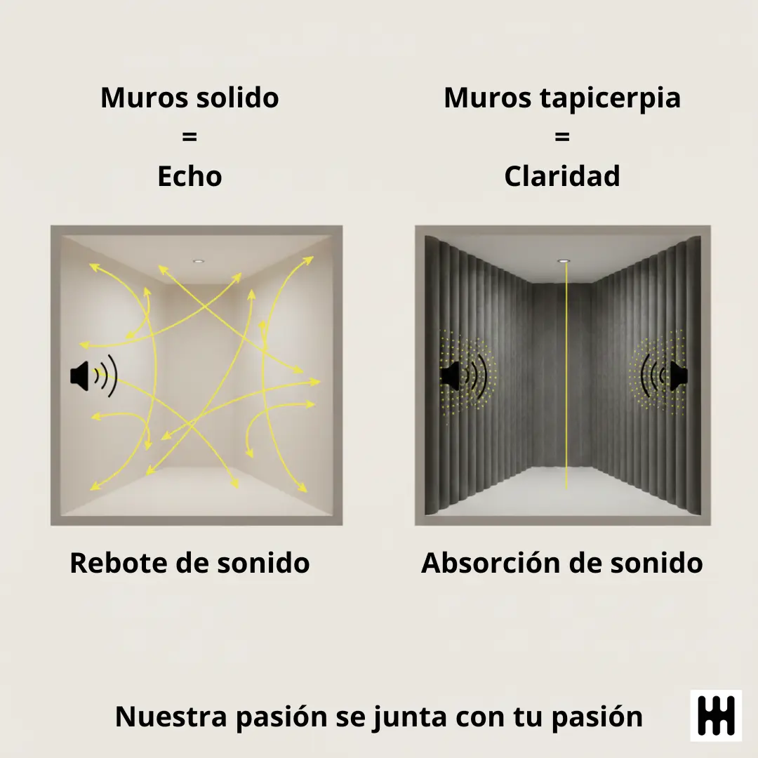 Absorción: Elimina el rebote del sonido, logrando una acústica suave y envolvente.